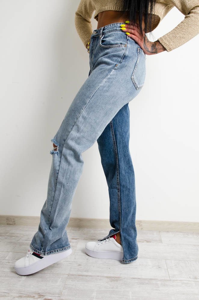 jeansy z rozciętymi nogawkami
